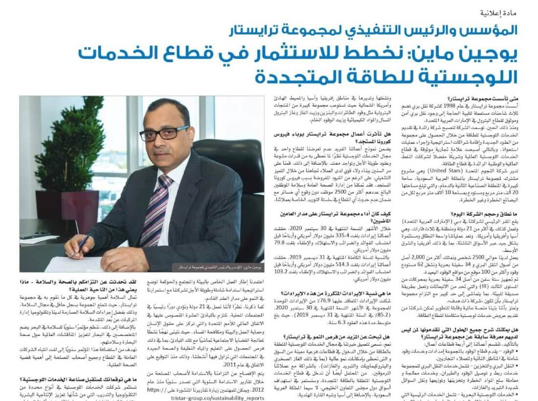Click here to watch this link from 15:15 to 20:15 where Tristar Group CEO Eugene Mayne shared with Senior News Anchor Greg Fairlie how logistics companies in the UAE performed in 2020.
