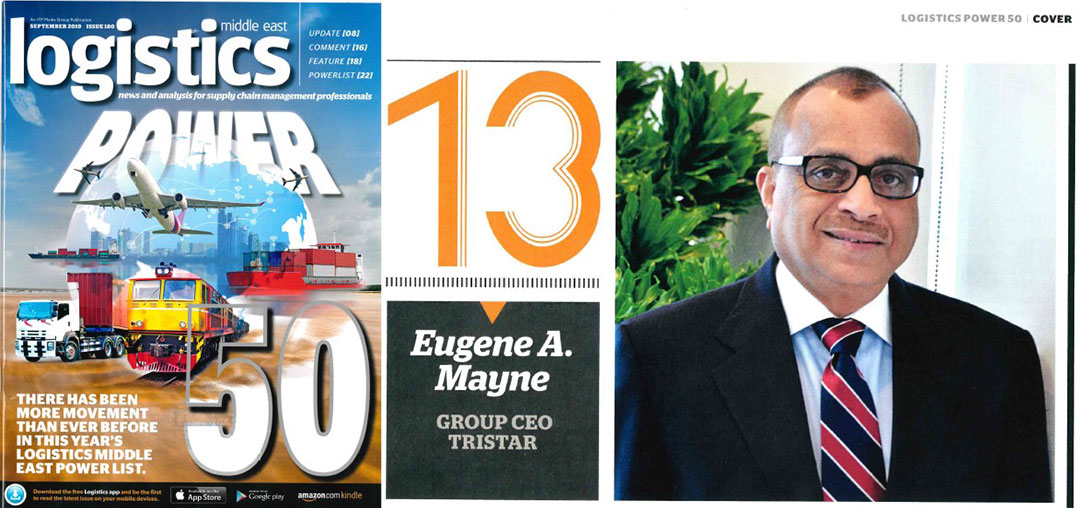 Mr. Eugene Mayne has maintained his no. 13 ranking in the latest Logistics Middle East Magazine Power List. A total of 50 individuals have been recognized as the most influential executives in GCC logistics. According to the magazine’s editor, the executives were ranked ‘not just according to the size of the company they manage, but according to the influence they have over the regional logistics puzzle’. This is the seventh consecutive year Mr. Mayne has been in the list, ranking no. 22 in 2013.