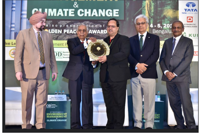 Tristar Group Chief Administrative Officer Balaji Nagabhushan (middle) received the “Golden Peacock Occupational Health & Safety Award” for the year 2019 at the recent Institute Of Directors (IOD), India’s “21st annual World Congress on ENVIRONMENT MANAGEMENT and CLIMATE CHANGE” and Golden Peacock Awards Presentation Ceremony held at JW Marriott Hotel, Bengaluru. Tristar was recognized for its Occupational Health and Safety Management systems in the organization such as the empowerment of all staff with the ‘Stop Work Authority’ card, NMPI reporting system, Quarterly Safety Meeting, and recently with the institution of the APEX HSEQ and Sustainability Committee