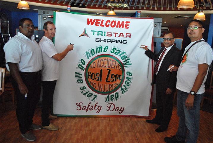 Tristar GCEO Eugene Mayne, Tristar Shipping team members, V.Ships General Manager and MSQ as well as representatives of the charterers of Tristar vessels namely BP, Shell and Total, and FSRS the oil spill response contractor, and representatives of the Fujairah Port Authority took part in the first Tristar Shipping Safety Day on December 15 held at the Trubell Seamen’s Club inside Fujairah Port.