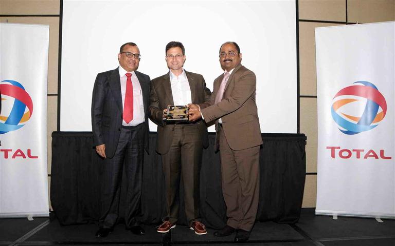Tristar Group CEO Eugene Mayne (right) and GM – RT&W Shivananda Baikady receive from Total MD David Khalife the Star Partner Award plaque on January 22 during the Supplier Convention 2015 held at Park Hyatt Hotel. Tristar was recognized for its outstanding performance in Total’s supplier evaluation program.