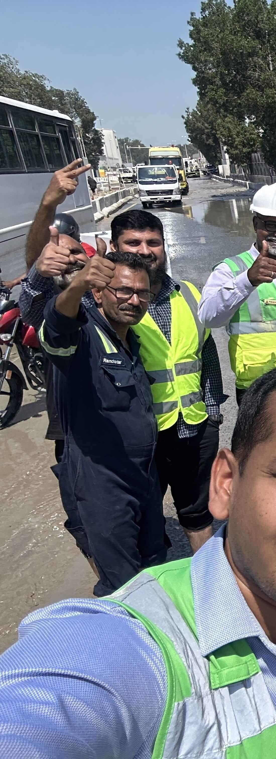 The community service by the Tristar team has enabled light and heavy vehicles to traverse the road which is a vital link to the yards of several cement and construction companies and towards the labour camps in Jebel Ali Industrial Area No. 3. Since Tuesday afternoon, the road was unpassable due to the flood with two buses, a container truck and several cars stuck.